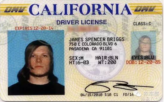 美國駕駛證(各個(gè)州都不同)